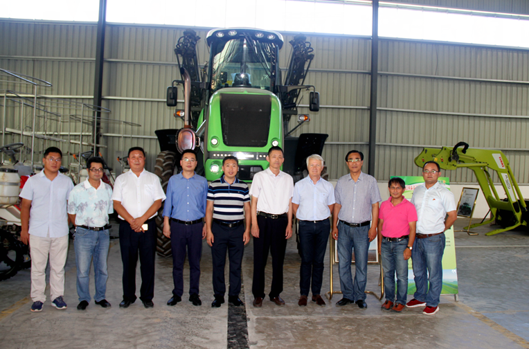 7月20日,法國Tecnoma(泰克諾瑪)有限公司全球銷售總監Doser Eric(多澤.艾瑞克)、中國區總經理熊書貴、技術經理曹云鑫一行到蘇墾農發黃海分公司考察交流,就其公司在黃海試驗示范的泰克諾瑪打藥機Laser3240試驗示范情況進行回訪調研。黃海分公司總經理、中德示范園主任賀在銳,黃海分公司副總經理、中德示范園副主任何彥平等陪同考察并介紹相關情況。