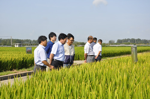 會議期間,蘇志富一行還深入到大華育種研究院淮安研究所的試驗(yàn)田邊察看了華粳8號等水稻品種的長勢長相,聽取了相關(guān)工作人員的情況介紹,并針對水稻生產(chǎn)如何進(jìn)一步提高產(chǎn)量、提高效益提出了要求。