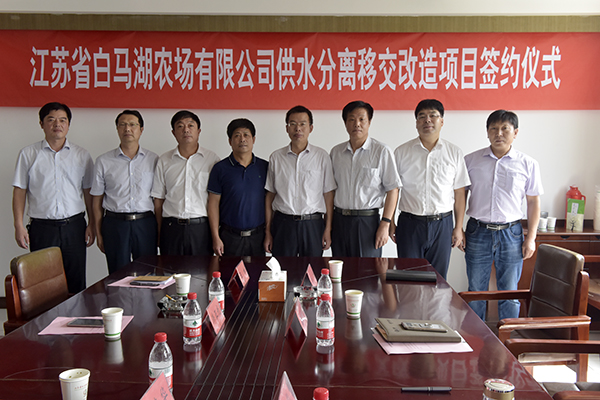 黨委書記、董事長、總經理姚春華首先致辭,向參加簽約儀式的各位領導表示熱烈的歡迎和衷心的感謝!指出,白馬湖供水分離移交改造工程是根據中共中央國務院、省委省政府關于農場改革發展的文件精神,結合《淮安區區域供水規劃》和白馬湖實際,經與區政府及其相關部門多次溝通交流達成的共識。項目總投資1472.39萬元,涉及職工居民4328戶,改造鋪設二三級管網235km。自2016年9月以來,作為農場公司最大的民生實事之一,供水改造工作得到了區委區政府的高度重視和積極推進,得到了各級領導的熱情關心和傾力支持,確保了改造工程在立項申報、政策落實、方案對接和措施推進等方面一直走在墾區前列,得到了省國資委和集團公司的充分肯定,整個對接過程傾注和凝聚了各級領導的辛勤汗水和不懈努力。該工程完成后,將有效改善場域自來水水質水壓,實現與城市供水同網同質同價,將極大改善職工居民的生活質量,提高職工群眾的健康水平,對提升職工群眾的幸福感和獲得感,對促進社會和諧、增進民生福祉具有重要的現實意義。他相信,隨著工程項目的簽約和啟動,必將開啟白馬湖改革發展、民生事業改善和場地合作共贏的新篇章。