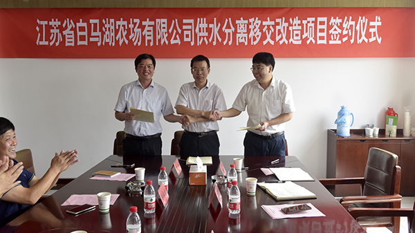 9月22日上午,淮安市淮安區政府及其相關職能部門在白馬湖舉行供水分離移交改造項目簽約儀式,宣告白馬湖供水分離移交改造工程全面啟動,表示將多方合力,共同將供水分離移交改造這一民生工程、感情工程做好做精并勇爭一流。