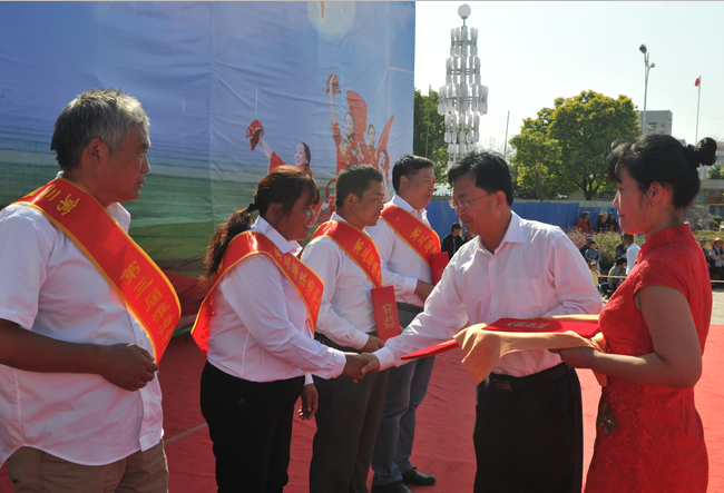 淮海涌現出一批又一批體現社會主義道德要求的文明新事,為淮海經濟社會又好又快發展提供了有力的道德支撐,也在全淮海形成學習先進、崇尚先進的良好氛圍。農場社區的廣大干部職工,正大力學習宣傳先進典型事跡,造濃爭創先進典型的濃烈氛圍,推進社會主義核心價值體系建設,有力地促進社會文明程度和道德水平的進一步提高。圖一為淮海農場有限公司舉辦的第十二屆廣場文化節;圖二為農場公司黨委書記王進強在給第三屆文明新事獲得者頒獎時的鏡頭。