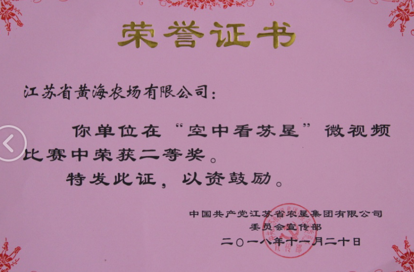在日前結束的江蘇農墾新聞宣傳工作會議上,黃海農場有限公司拍攝制作的微視頻《空中看蘇墾—蘇北明珠》及《蘇北明珠、美麗黃海》品牌形象宣傳片分別榮獲二等獎;黃海農場有限公司網站被集團公司《評為2018年度優秀網站》。
