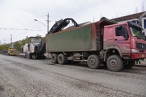 2月14日,新洋農場緯四中路改造工程正式開工。工程現場,一臺銑刨機和幾輛大卡車在12米寬的路面上同時作業,龐大的機器在瀝青路上銑刨、裝運一次完成,一條條紋理清晰的條狀基層呈現了出來,平整、均勻,干凈利落。