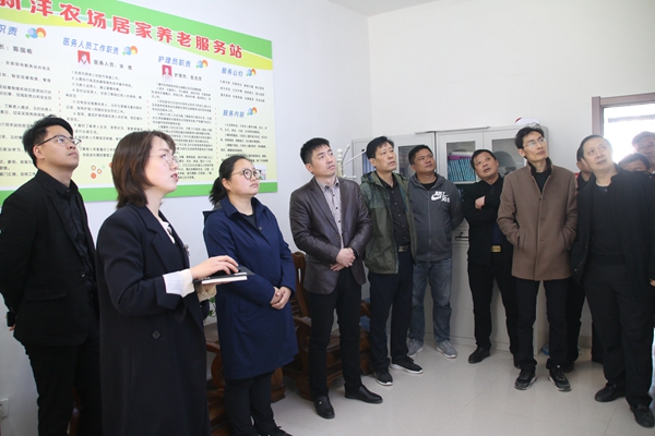 途中,戴學林簡要介紹了新洋經濟社會基本概況,重點就產業發展、社會職能改革、資產資源盤活利用、社區創新管理、企業文化建設等進行介紹。他說,近年來,新洋不斷深化改革,以改革促發展,加強農業高效精細化管理,挖掘林苗木生產潛力,盤活存量資產,使“死資產”變成“活資源”,經濟發展呈現良好勢頭。根據社會職能改革要求,圍繞“內部分開、管辦分離、授權委托、購買服務”十六字方針,積極穩妥推進社會職能改革,進展順利。新洋連續26年蟬聯省級文明單位稱號,緊緊抓住江蘇農墾新時代文明實踐中心建設試點的機遇,結合傳統文化建設成果,以愛心超市為載體,志愿者服務為特色,將新時代文明實踐、文明單位創建與精準幫扶、家政服務、居民素質提升相結合,大力開展大愛新洋創建活動,弘揚真善美,提高居民幸福指數,不斷豐富大愛文化內涵。同時,以居家養老服務中心為依托,引進智能化管理系統,積極探索和滿足老年服務的深層需求,不斷豐富老年服務內容,積極應對場域老齡化現狀,踐行尊老愛老敬老的良好風尚。