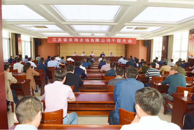5月23日上午,省農墾集團公司黨委副書記姚準明出席淮海干部大會并發表講話,集團公司黨委委員、組織部長楊義林在會上宣讀集團公司黨委對淮海領導班子調整的決定:王進強不再擔任淮海農場有限公司黨委書記職務,單祥忠同志任淮海農場有限公司黨委書記,王燦明同志任淮海農場有限公司黨委副書記、董事,蘇墾農發淮海分公司總經理,陳海軍同志任淮海分公司工會主席,孫國祥同志任淮海農場有限公司監事。農場公司黨委書記王進強主持會議并作離職感言,新任農場公司黨委書記單祥忠,農場公司黨委副書記、董事、分公司總經理王燦明分別作表態發言。農場公司副總經理孫司正,紀委書記、工會主席孫國祥,黨委委員陳海軍及片區財務總監李成軍等出席,淮??萍壷硪陨先藛T及機關全體人員參加會議。