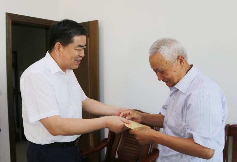 魏紅軍一行來到退休老黨員陳之祥家中,與他親切交談,仔細詢問近期的生活狀況和身體情況。陳之祥老人晚年不幸患有肝癌,但心態積極樂觀,目前還擔任老干部支部書記,繼續在為黨組織發揮余熱。魏紅軍為他送上慰問金,并對老人樂觀向上充滿正能量表示贊賞,同時鼓勵要堅定生活信心,安心治病,安享幸福的晚年生活。在困難退休職工夏群武家中,當得知夏群武老人患有嚴重帕金森綜合癥、且獨自一人生活時,魏紅軍緊緊握住他的手,鼓勵他一定要鼓起生活的勇氣,保持愉悅的心情,將慰問金交到他手中,并囑咐農場公司負責同志盡力予以關心照顧。老人連連點頭感謝黨,感謝集團公司黨委。