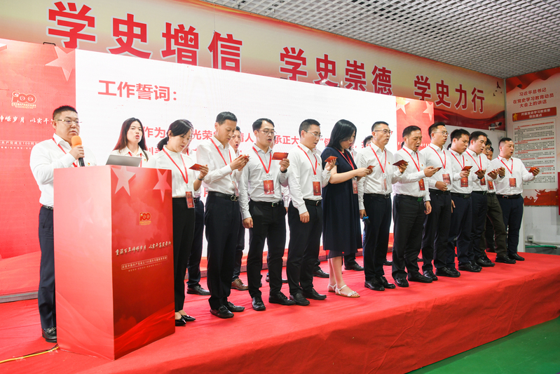 會上,九名優(yōu)秀黨員代表分享了學(xué)黨史、感黨恩、跟黨走的感悟,紛紛表示將以共產(chǎn)黨員的先進性指導(dǎo)工作,啟發(fā)工作思路,取得良好業(yè)績。在姜國勇的帶領(lǐng)下,與會人員鄭重進行工作宣誓,承諾用智慧和汗水創(chuàng)造價值,為實現(xiàn)百年天晴而不懈奮斗。