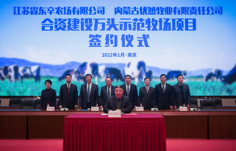 1月12日,東辛農(nóng)場公司與內(nèi)蒙古伊利集團(tuán)優(yōu)然牧業(yè)公司合資建設(shè)萬頭示范牧場項(xiàng)目正式簽約。本次簽約儀式采用視頻會議形式進(jìn)行,省委農(nóng)辦主任、省農(nóng)業(yè)農(nóng)村廳廳長楊時云,總畜牧獸醫(yī)師袁日進(jìn),集團(tuán)公司黨委書記、董事長魏紅軍,總經(jīng)理胡兆輝,副總經(jīng)理姜建友、王立新,總法律顧問吳以國、總經(jīng)理助理錢伯彬、董事會秘書孟亞平在南京出席儀式,伊利集團(tuán)董事長潘剛,執(zhí)行總裁張劍秋,副總裁劉剛、晁德文在呼和浩特出席儀式。袁日進(jìn)、胡兆輝、張劍秋分別代表三方致辭,姜建友主持簽約儀式。