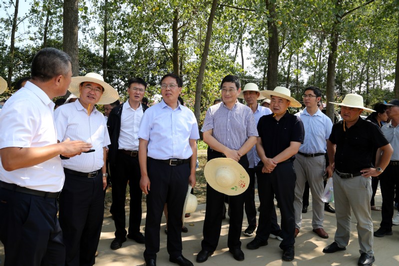 8月17日下午,省農業農村廳總農藝師唐明珍以及省相關市縣農業部門一行100余人組成的玉米大豆帶狀復合種植調研組到新曹觀摩,集團公司黨委委員、副總經理王立新陪同。