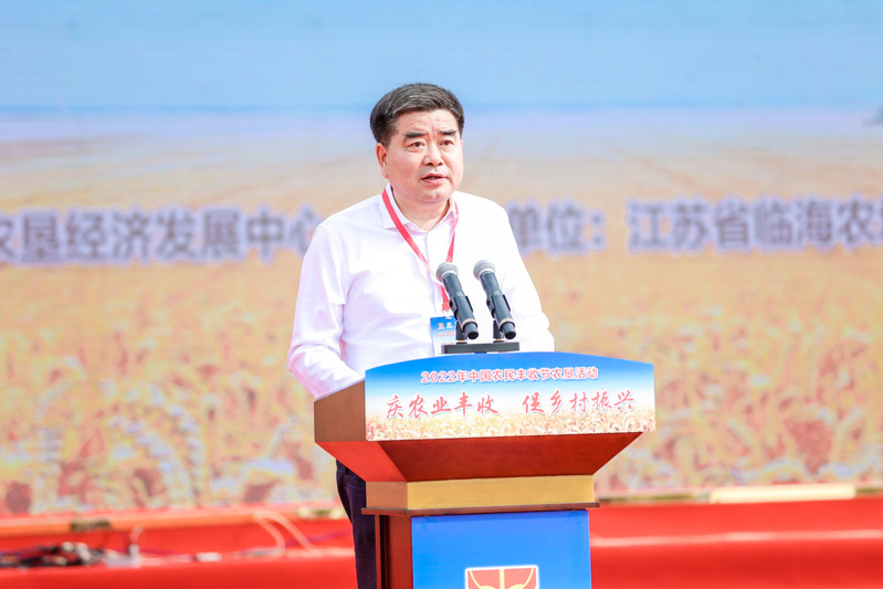 吳岡玉在致辭時說,近年來,射陽縣委縣政府與臨海農場公司、新洋農場公司、淮海農場公司一起,認真落實中央和省市關于農墾改革發展部署要求,持續深化墾地融合發展,在推動智慧農業發展、做強“射陽大米”品牌、建設美麗田園鄉村等方面成效顯著,江蘇農墾麥芽入選2022年度江蘇省省長質量獎,縣農業農村局獲評全省夏糧生產貢獻突出單位。射陽縣將以這次農墾豐收活動為新起點,錨定創建國家級農業現代化示范區和省級農業現代化先行區目標,聯合省農墾集團的資源、技術、市場等優勢,推動駐射陽各農場與縣屬各國有企業、友鄰鎮區一道,在推進種業振興和高標準農田建設方面共同發力,積極推進“三品一標”創建,合力打造江蘇東部沿海大糧倉、生態糧食大超市、鄉村休閑大花園,共同繪就新時代魚米之鄉的美麗畫卷。