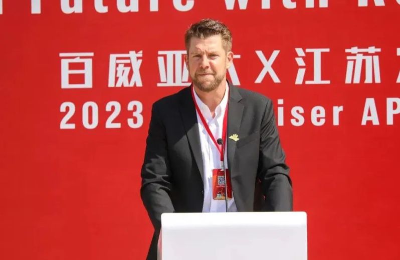 活動中,中國酒業協會秘書長兼啤酒分會理事長何勇,中國食品發酵工業研究院首席技術顧問、中國酒業協會啤酒原料專業委員會理事長張五九分別作交流發言,部分嘉賓圍繞“再生農業”相關議題進行圓桌討論,百威亞太與江蘇農墾簽署了2023年戰略合作協議。最后,在陣陣掌聲中,胡兆輝等人按下啟動按鈕,倡議多方聯動,共同開啟啤酒行業節能減排美好未來。