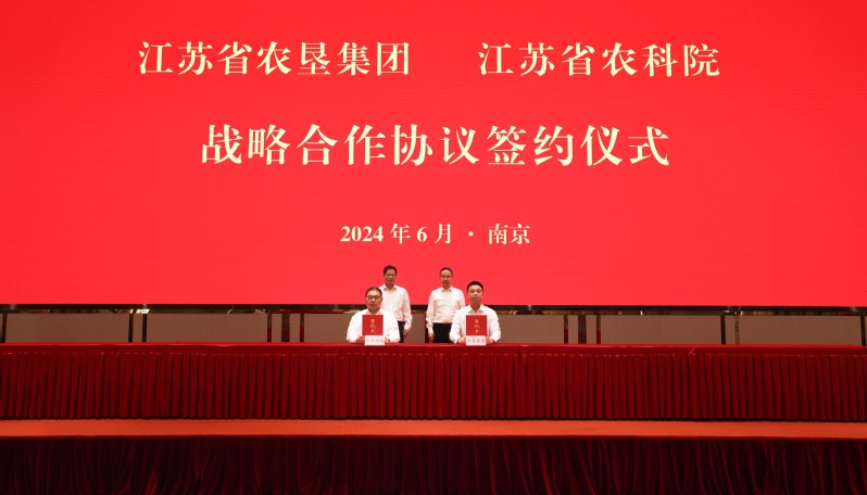 6月27日上午,省農墾集團與省農科院戰略合作協議簽約儀式在南京舉行。集團公司黨委書記、董事長吳本輝致辭,省農科院黨委書記、院長易中懿講話。集團公司黨委副書記、總經理姜建友出席簽約儀式,黨委委員、副總經理王立新主持簽約儀式,省農科院黨委委員、副院長黃俊、王冉,黨委委員蘇國東出席簽約儀式。