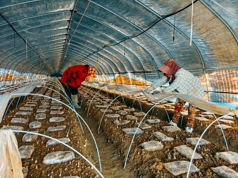 走進淮海農(nóng)場產(chǎn)業(yè)發(fā)展中心羊肚菌種植基地,在率先進行播種的11個羊肚菌大棚內(nèi),一簇簇褐蓋白桿、狀似羊肚的羊肚菌錯落有致地分布在畦面上,長勢十分喜人,預計幾天后便可進行集中采收,產(chǎn)量能達到800斤以上。種植初期,由于羊肚菌品種單一、種植技術(shù)落后,淮海的菌菇產(chǎn)業(yè)一直難以做大做強做優(yōu)。為此,淮海農(nóng)場產(chǎn)業(yè)發(fā)展中心堅持“走出去、引進來”,多次與省農(nóng)科院等大院大所合作,選擇最適合淮海種植的羊肚菌菌種,同時赴揚州、徐州、山東等處開展實地考察和交流,掌握羊肚菌種植技術(shù)的重點、要點,在實際探索過程中逐步解決種植難點、痛點,最終確定引進產(chǎn)量高、品質(zhì)優(yōu)、口感好、深受市場歡迎的“六妹”“七妹”兩個品種并成功種植。為確保羊肚菌的品質(zhì)和質(zhì)量,產(chǎn)業(yè)發(fā)展中心羊肚菌種植技術(shù)員嚴格控制好大棚內(nèi)的溫度、濕度和光照等環(huán)境因素,為羊肚菌提供一個最佳的生長環(huán)境。面對初春溫差反復的實際,技術(shù)人員還創(chuàng)新性地使用揭蓋黑白膜的方式,保障大棚內(nèi)的羊肚菌健康發(fā)育。同時,定期進行大棚巡查和病蟲害防治,確保羊肚菌在生長過程中不受侵害。農(nóng)場公司也多次組織機關(guān)、社區(qū)管理人員開展志愿服務,全力為羊肚菌產(chǎn)業(yè)發(fā)展保駕護航。經(jīng)過兩年的探索種植,2024年,產(chǎn)
